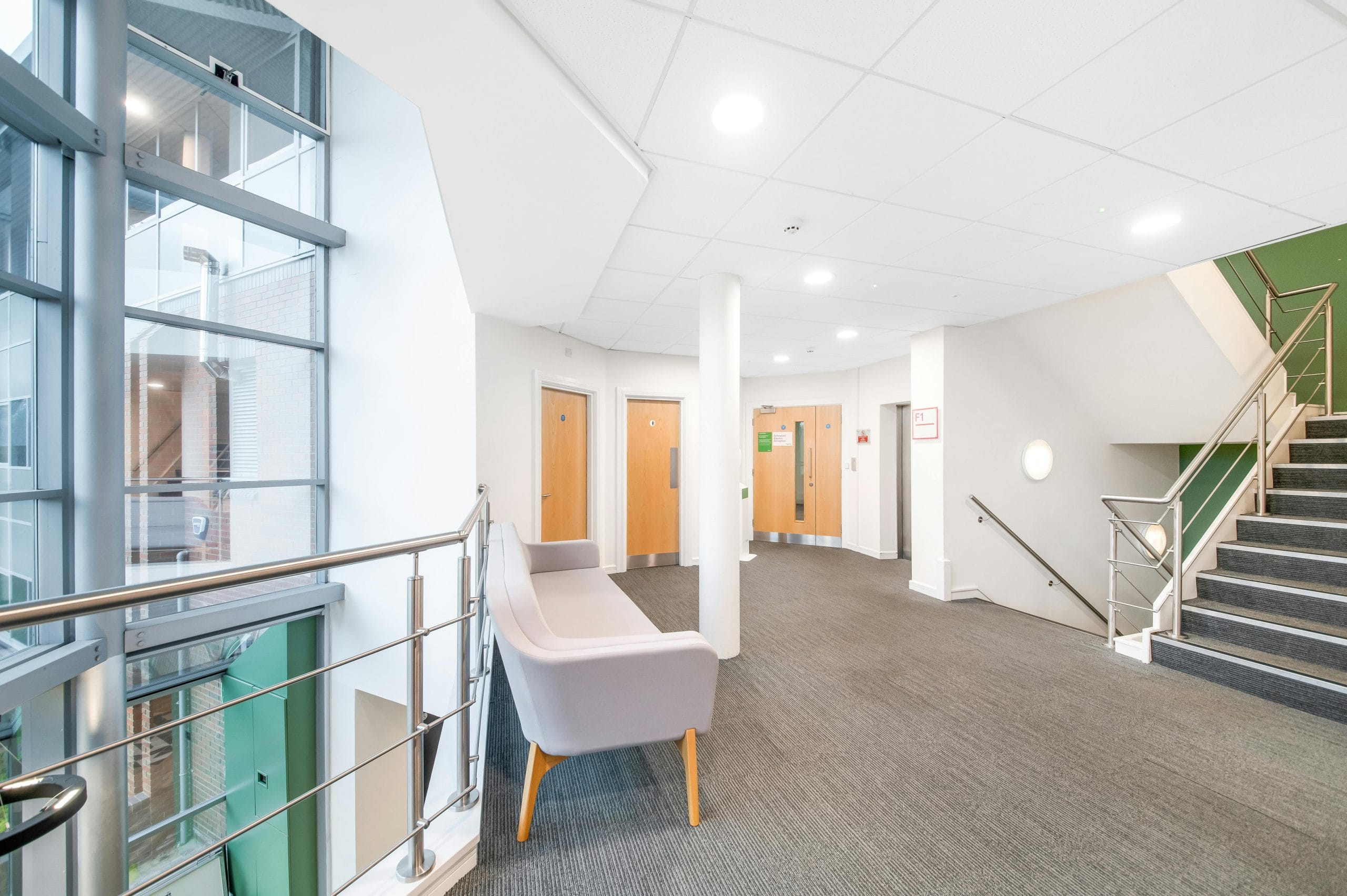 310 Europa Boulevard comprises a detached three-story office building, extending to 27,195 sq ft. The building is of brick construction, beneath a pitched slate roof. The property is configured across two distinct wings serviced by a central core, allowing for flexible floor plates. The building has recently completed a refurbishment of the communal areas including new reception area and break out space as well as an exposed services refurbishment of the ground floor suite.