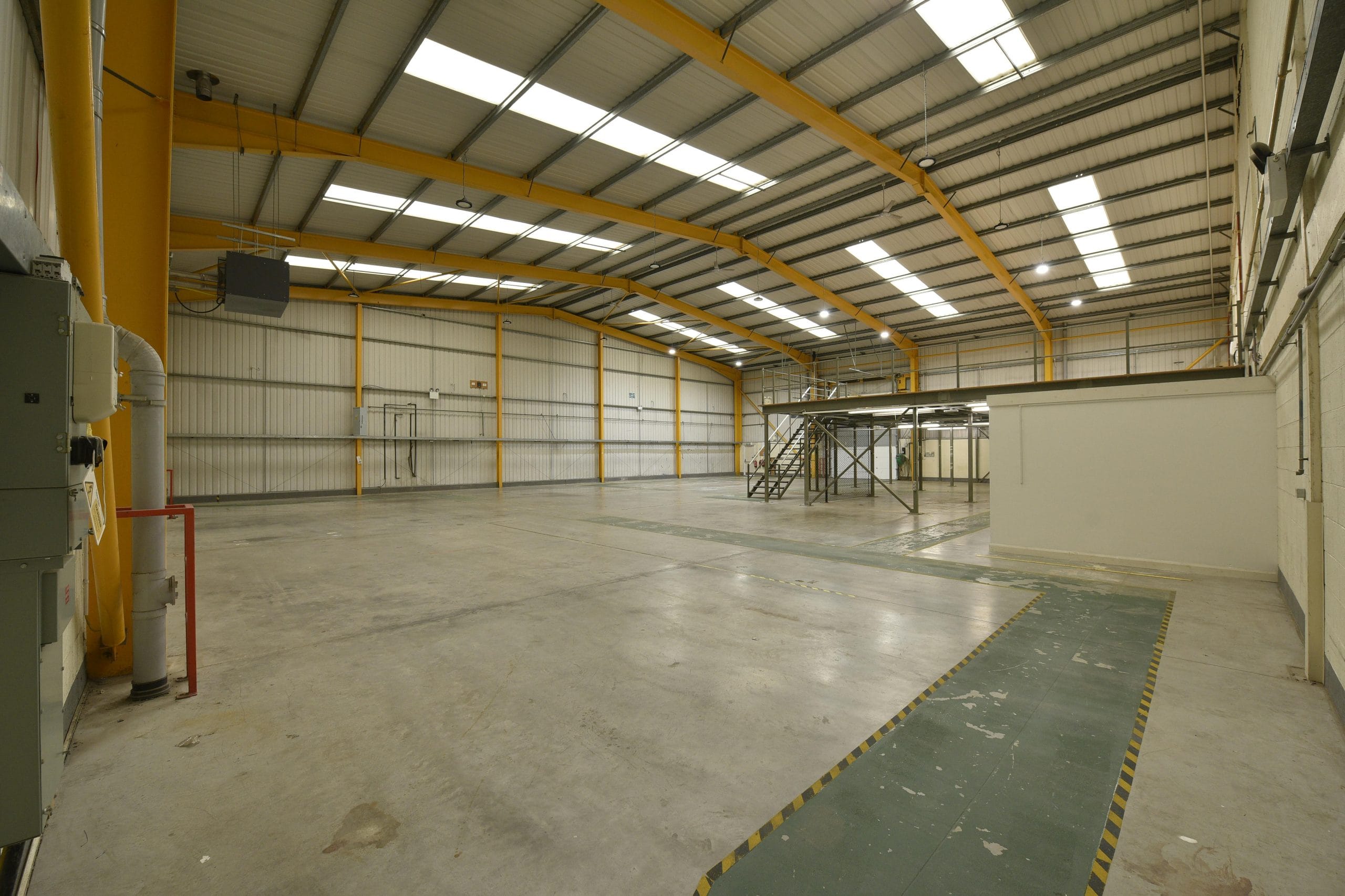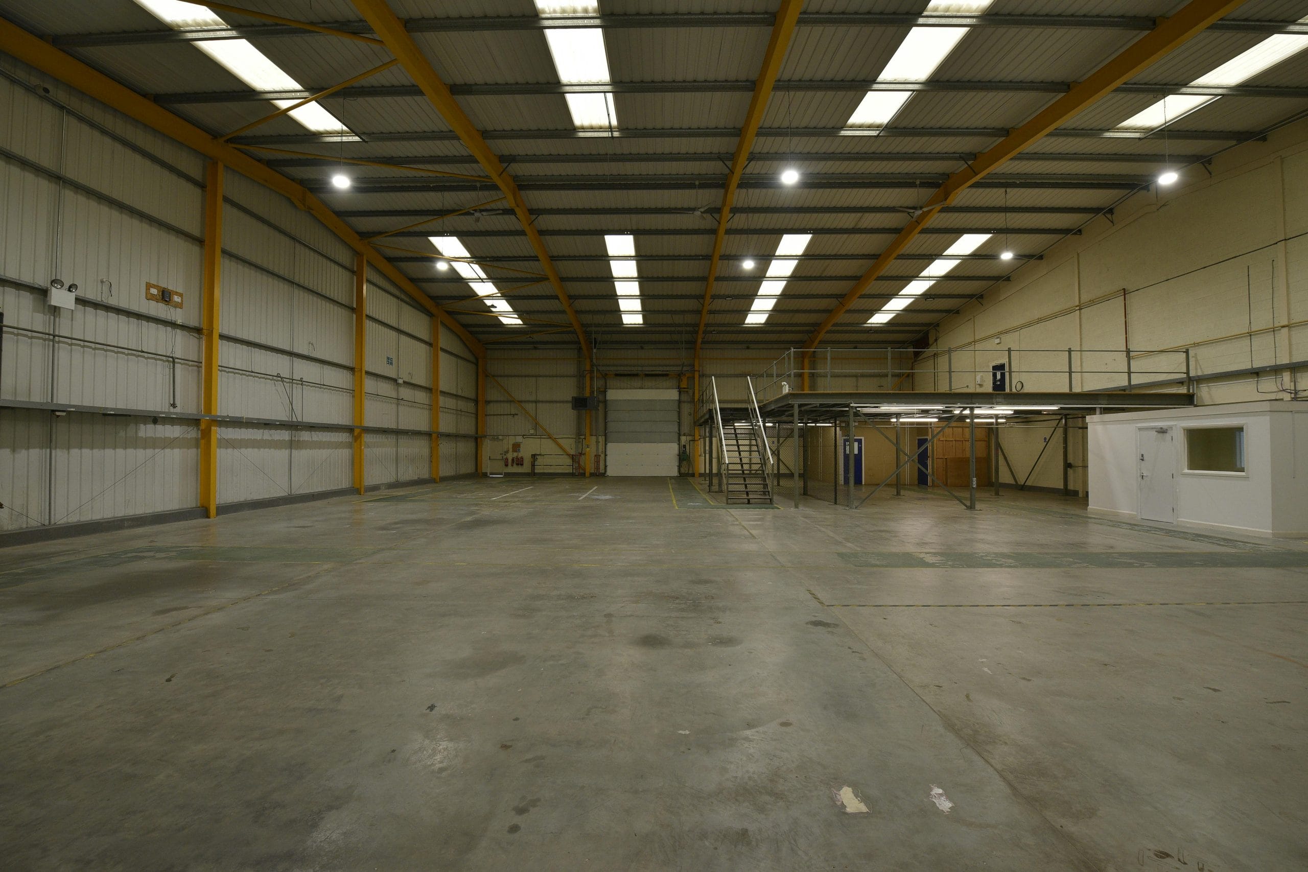 areas all finished to a high standard.Internally, the warehouse has concrete block walls to a height of approximately 2.4m and a minimum eaves height of 6.5m. It is well-equipped with LED lighting and gas-fired hot air heaters to ensure a well-lit and temperature controlled environment.