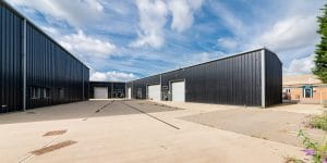 The property comprises two blocks of industrial units constructed in 2016. The development is of steel portal frame construction with pitched insulated roofs and insulated external sheet cladding. The external areas which provide yard space and car parking are fully laid to concrete. The site is self contained and fully fenced with large double entrance gates.