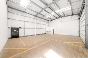 Unit 1 is a detached building with eaves height of 8m, providing warehouse / production space, office accommodation, kitchen/mess room and WC facilities, together with a structural mezzanine floor above. The unit benefits from a full height roller shutter door to the front elevation.
